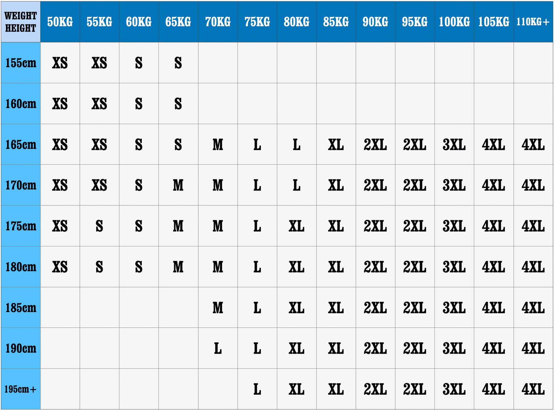 • Storleksalternativ : S, M, L, XL, 2XL, 3XL, 4XL
